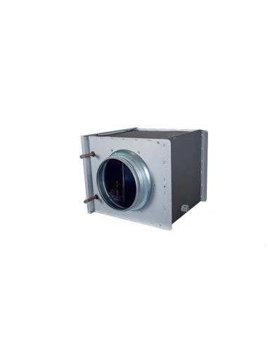 Entre sus ventajas técnicas destacan sus 7 medidas estándar y su batería con 3 filas de tubos, lo que asegura un alto rendimiento. La envolvente está fabricada en chapa de acero tratada de aluminio cincado, garantizando durabilidad y resistencia en condiciones exigentes. La tapa de registro permite una fácil inspección y limpieza, asegurando el buen mantenimiento del sistema. Las conexiones de conductos circulares con juntas de goma aseguran una estanqueidad al aire clase D, según la normativa EN 15727, mientras que sus temperaturas de trabajo abarcan desde 0°C hasta +110°C con agua y de -40°C a +110°C con glicol.