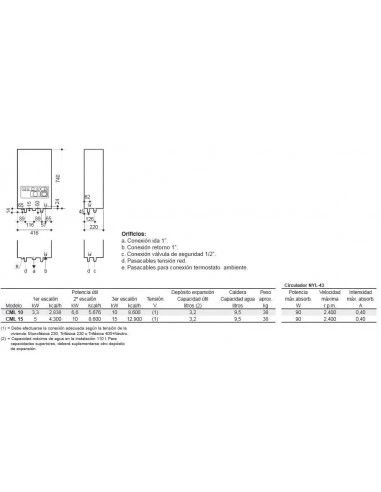 - Grupo calefactor compuesto de: Caldera CML 10: tres resistencias de 3,3 kW cada una.