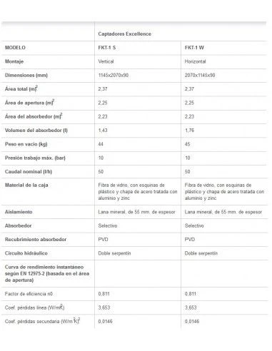 | El Captador solar plano Junkers Excellence FKT-2 W, de alto rendimiento, con tratamiento altamente selectivo (PVD), para montaje en horizontal El circuito hidráulico en doble serpentín y permite conexión en paralelo hasta 10 captadores, sus uniones metálicas flexibles, de muy fácil conexión y gran durabilidad. Su absorbedor, lámina completa de Cu/Al y su soldadura en Omega para una mejor transferencia del calor. Con aislamiento de lana mineral de 55 mm. de espesor y carcasa de una sola pieza, realizada en fibra de vidrio con una superficie apertura 2,426 m2. |