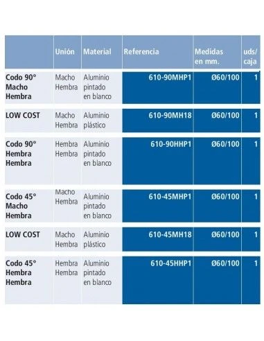 Codo 45º de alummio pintado blanco para aparatos tradicionales instalación individual en interiores, Coaxial 60/100
