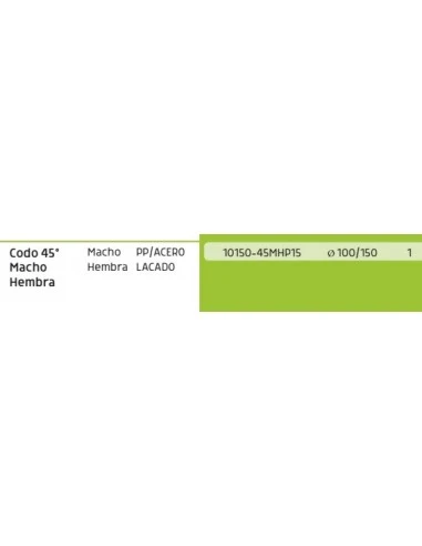 Codo 45º coaxial de polipropileno Fig 10150-45MHP15, diámetro 100/150 mm, blanco, unión Macho-Hembra, aparatos de condensación, instalación individual y colectivas en interior