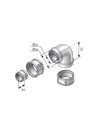 Codo 90º, unión Macho-Hembra, y diámetro 60/100 mm