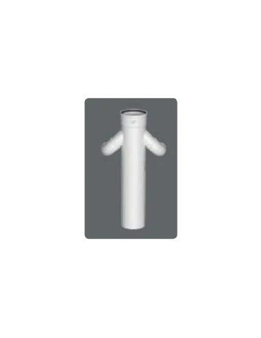 Colector horizontal, entronque de 45 mm, FIG Ø 125, con 2 codos de 90°, fabricado en polipropileno, color blanco, para sistema de evacuación de humos