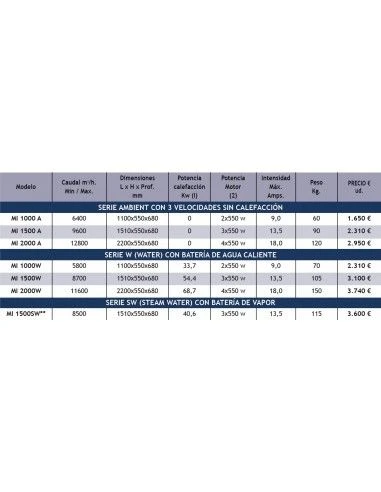 Cortinas de aire Industriales TECNATHERM MI serie Steam Water
