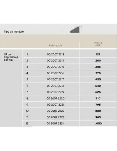 | Fijaciones para instalación en fila de captadores sobre teja curva |