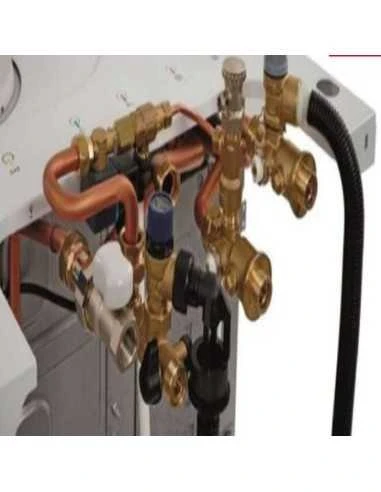 El Kit de conexión para caldera Saunier Duval Duomax Condens que permite el llenado automático, llave de gas y válvulas de seguridad (calefacción 3bar/ ACS 10bar) con tubos flexibles de desagüe. Y por último simplifica su mantenimiento pudiéndose desmontar (deposito/ caldera) para facilitar su manipulación.