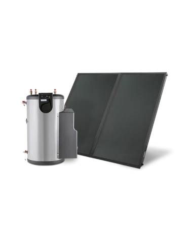El sistema solar DS-MATIC está conformado por una o dos placas solares de tiro forzado, un acumulador de acero inoxidable de 150-250 L de capacidad, vaso de expansión de ACS y válvula de seguridad de ACS.