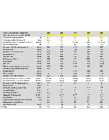 - Acumulador de 1 o 2 serpentines de acero al carbono, equipado con protección anódica