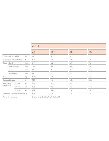 El diseño del radiador Baxi ASTRAL 60 da prestigio por la elegancia, valor y calidad de su diseño de frontal plano, que se adapta a los gustos más modernos y a las necesidades de diseño de interiores, manteniéndose a la vanguardia de la manera más discreta. Este Radiador de aluminio Baxi Astral 60 de 3 elementos con 568 mm de altura es de fácil mantenimiento, gracias a la simplicidad en el diseño de sus laterales y el frontal plano facilitan al máximo la limpieza de posibles residuos de polvo. Disponible en 4 modelos de 45, 60, 70 y 80 y suministrado en baterías de 3 a 12 elementos.