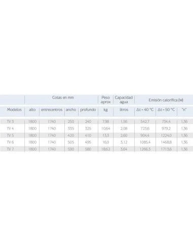 Los radiadores de la Gama TV con una altura de 180 centímetros, constituye una evolución estética moderna del radiador AV, con elementos terminales curvos semicirculares. La perfecta solución por la suave y compacta geometría de sus formas, así como por sus altas prestaciones térmicas. Este Radiador de aluminio formado por elementos unidos hidráulicamente por un colector superior y otro inferior. Sus elementos extremos redondeados y su impecable y sobrio acabado con doble capa de pintura en color blanco RAL 9010 secada al horno, le convierten en un elemento decorativo más de la estancia en la que se encuentre ubicado. Disponible en modelos de 3 hasta 7 elementos no acoplables entre sí.