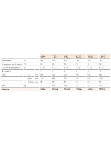 Ficha técnica Radiador eléctrico Baxi ALEC