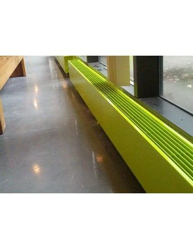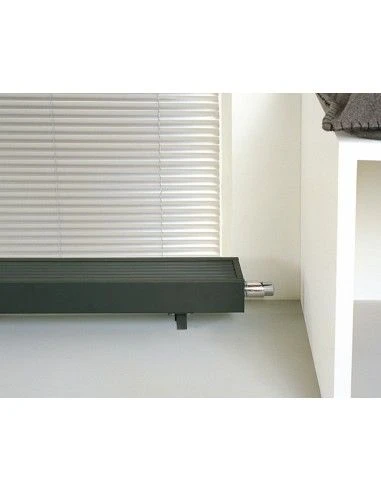 Este emisor de baja temperatura está especialmente diseñado para hogares que contengan estancias con ventanales grandes y antepechos bajos, desde 8cm de altura. Este tipo de calefacción horizontal contiene tecnología Low-H2O, con opción DBH.