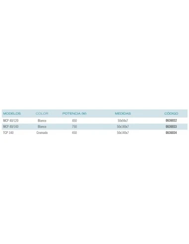 - Toallero eléctrico serie CURVA MCP 40/120, Blanco