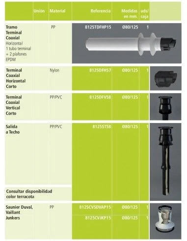 - Salida vertical coaxial de polipropileno compatible Saunier Duval, Vaillant 80/125 Fig