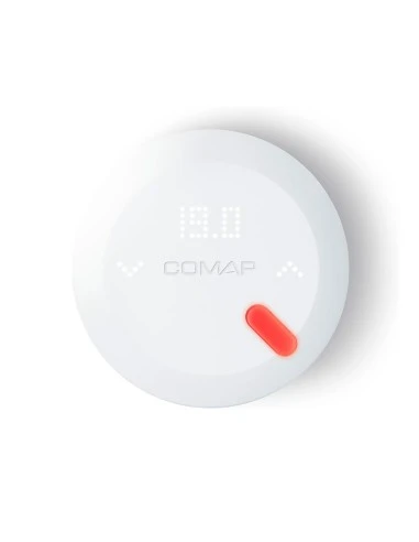El Termostato Comap Smart Home Programable proporciona calefacción inteligente al tiempo que reduce el consumo y mejora el confort. No requiere programación, se adapta a los hábitos de los residentes y detecta cuándo la vivienda está ocupada o vacía para reducir al máximo el consumo. El termostato y su consumo de calefacción se pueden gestionar y controlar a través de la app, disponible en Play Store y Apple.
