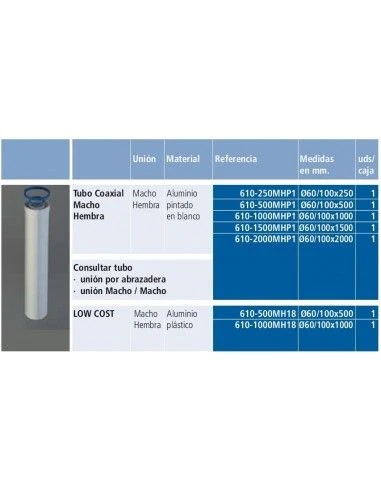 Tubo coaxial de alummio pintado, blanco, para aparatos tradicionales instalación individual en interiores, Coaxial 60/100
