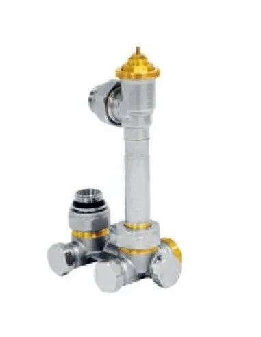 Esta Válvula H Jaga vertical a la pared Kv estándar 3/4″ Eurocono macho, solo está disponible para combinar con un sensor a distancia, cabezal termostático por control remoto o cabezal manual.Valor Kv estándar bitubo 0.10 hasta 0.60 m³/h, para instalación a pared.