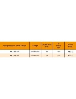 Recuperadores De Calor Regenerativos TECNAVENTSTWINFRESH RB 1-25-100